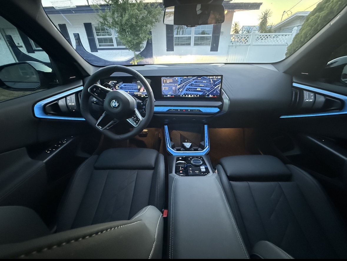 Slip inside and you’re greeted by a curved digital display that sweeps across the dash like a piece of art. Ambient lighting sets the mood. M Sport seats cradle you in comfort, wrapped in premium materials with bold stitching. The minimalist cockpit, complete with a sporty M steering wheel and intuitive iDrive 9 interface, makes every drive feel elevated and effortless.