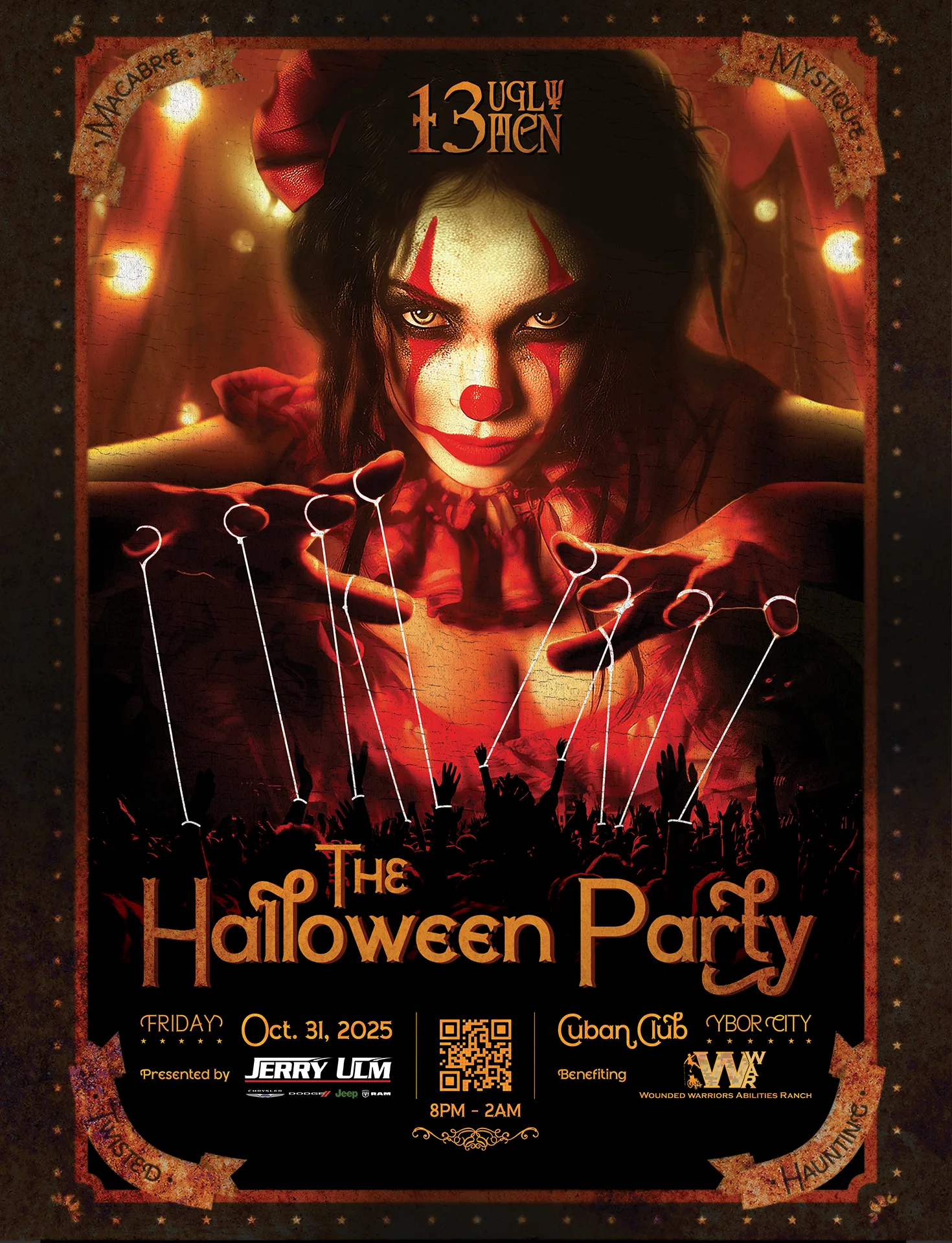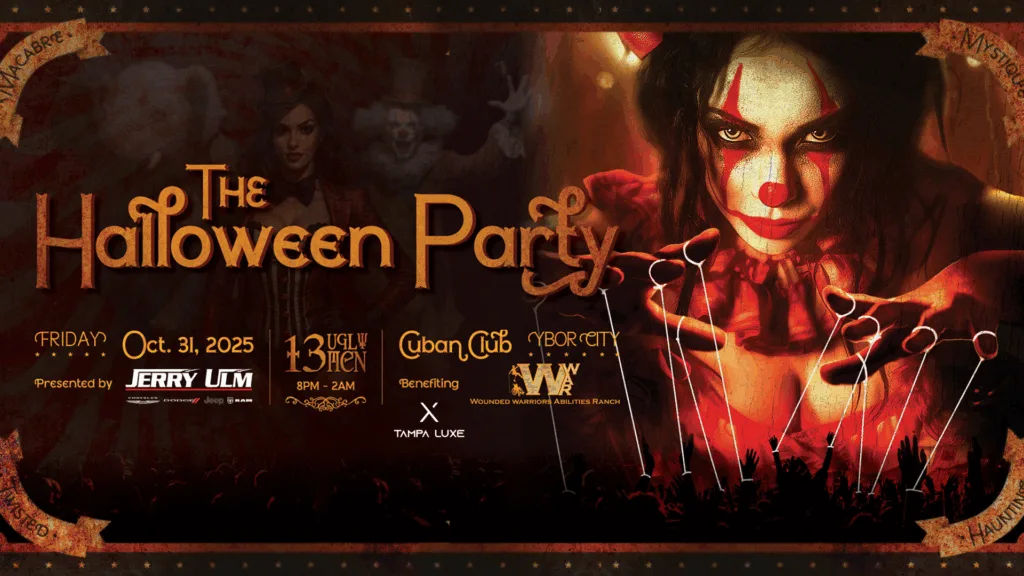 When it comes to Halloween in Tampa, no event compares to “The Halloween Party” presented by 13 Ugly Men and Jerry Ulm Dodge Chrysler Jeep Ram. On Friday, October 31st, 2025, The Cuban Club in Ybor City will transform into a haunted playground filled with live DJs, immersive entertainment, and eerie elegance — all supporting the Wounded Warriors Abilities Ranch.