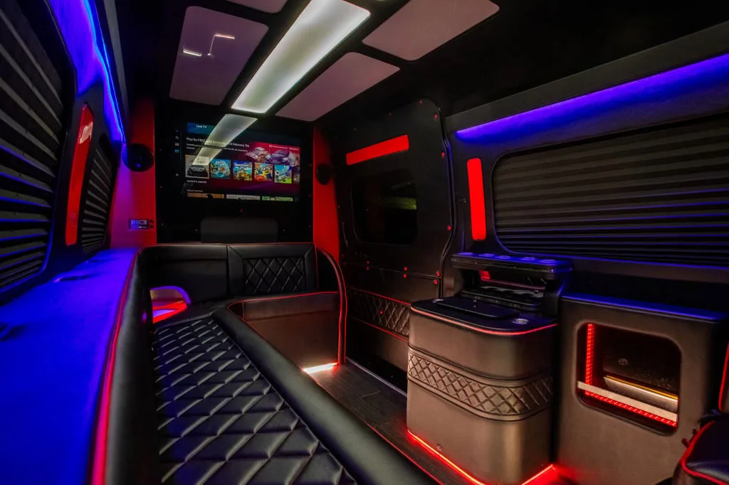 Forget the parking headaches and rideshare surge pricing. For group arrivals, Tampa Luxe’s Mercedes Sprinter fleet is the move. Each luxury limo Sprinter features plush seating, LED lighting, premium sound systems, and champagne-ready tables — setting the mood before you even hit the venue.