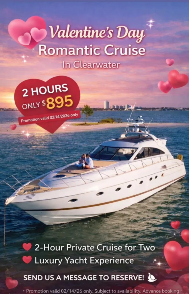 Valentine’s Day is about more than just dinner reservations and flowers — it’s about creating a night that actually feels special. This year, elevate your Valentine’s celebration with a luxury yacht experience in Clearwater, paired with optional black car or sprinter transportation for a completely seamless, stress-free evening.